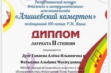 Поздравляем Дуэт преподавателей: Ганиеву Алену Ильиничну @ganieva_violin Фатыхову Альбину Махмудовну @albinafat3 с дипломом лауреата II степени Республиканского конкурса вокального и инструментального исполнительства "Алишевский камертон", посвященный 100-летию Р.М. Яхина.