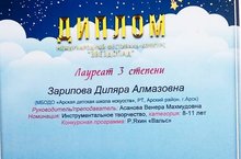 Зарипова Диляра - лауреат III степени, Каримова Дина - дипломант II степени. Преподаватель Асанова В.М. была отмечена Благодарственным письмом. Молодцы!