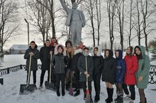 Молодёжный парламент Арского муниципального района совместно со студентами добровольческого движения ГАПОУ "Арский агропромышленный профессиональный колледж" "Добровольцы добра" продолжают акцию #Чистыйпамятник в посёлке Урняк. 20.01.2021