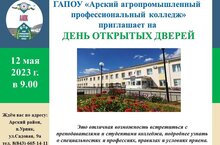 Приглашаем вас 12 мая на День открытых дверей в ГАПОУ "Арский агропромышленный профессиональный колледж"! / Сезне 12 май көнне Арча аграр-сәнәгать һөнәр көллиятенә Ачык ишекләр көненә чакырып калабыз! 12.05.2023
