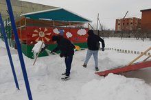 Арча аграр-сәнәгать һөнәр көллиятенең 1нче филиалы волонтерлары бүген "Исток надежды" тернәкләндерү үзәгенең балалар мәйданчыгын кардан чистартырга ярдәм иттеләр.