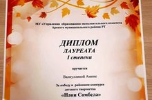 Поздравляем воспитанницу детского сада №7 "Детство" Валиуллину Амину за победу в районном конкурсе "Нәни Сөмбелә". Амину наградили дипломом Лауреата 1 степени. Желаем дальнейших успехов. Пусть эта маленькая победа будет шагом к огромным достижениям.