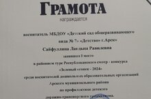Наша коллега - Сайфуллина Ландыш Равилевна участвовала в районном туре Республиканского смотр - конкурса "Зелёный огонёк - 2024" и заняла 1 место. Мы поздравляем Вас и желаем еще большего вдохновения и творческого рывка во всем.
