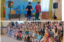 Сегодня артисты театра Т.Миннуллина (коллектив «Мечта») показали для детей спектакль по правилам дорожного движения «Осторожно, Чебурашка».