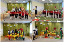 Сегодня дети младшей группы "Друзья" и старшая группа "Солнышко" показали театрализованное представление "Клоунята изучают ПДД" и "Путешествие в страну правил дорожного движения "