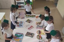 Туган тел атналыгы барышында балалар бакчасына йөрүче балалар яраткан язучылары, шагыйрьләре иҗаты белән "И туган тел" исеме астында оештырылган китап күргәзмәсе ярдәмендә таныштылар.Балалар өчен китапның эчтәлеге генә түгел, бизәлеше дә зур эhәмияткә ия. Алар hәр китапны үз куллары белән тотып карап, узләренең төрледән-төрле фикерләре белән уртаклаштылар.