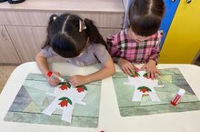 Дети старшей группы «Капелька» продолжили детей с татарским декоративно-прикладным искусством. Дети рассмотрели одежду украшенную татарскими узорами. Узнали, что чаще всего в татарском орнаменте используется цветочно–растительный орнамент, что богатейший мир растений всегда вдохновлял народных мастеров и мастериц в их творчестве. Дети с удовольствием и большим старанием принялись украшать фартуки элементами татарского узора. У всех работы получились яркими, красочными и очень красивыми