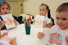 В подготовительной группе "Друзья" прошло занятие по пожарной безопасности " Юные пожарные спешат на помощь" , в начале которого была проведена беседа о правилах поведения при пожаре, о професии пожарного, а также вспомнили средства пожаротушения. Много узнали о том, какой вред может принести игра с огнем. В конце занятия воспитатель предложила поучаствовать ребятам в сюжетной- ролевой игре " Едем на пожар".