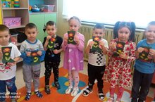 Бүген кече төркем балалары юл хәрәкәте кагыйдәләрен кабатладылар. Светофор сигналларын,юл йөрү өлешен, тротуарны аерырга өйрәнделәр/ Сегодня дети младшей группы повторяли правила дорожного движения. Учились различать сигналы светофора,проезжую часть дороги, тротуар.