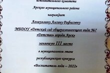 Поздравляем воспитателя по обучению английскому языку Аглиуллину Алсину Рафисовну занявшую 3 место в муниципальном этапе республиканского конкурса "Воспитатель года - 2022"