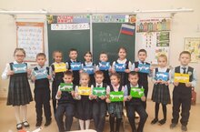 Все ученики получили Орлятский значок, который символизирует единство всех Орлят и означает, что ребята, которые его носят своими делами и поступками служат примером для других, помогают создавать в классе интересную жизнь, являются верными и преданными друзьями.
