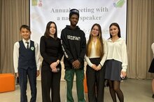 Сегодня, 24 сентября 2025 года, в Арской гимназии №5 состоялась очередная встреча учеников с носителем языка, студентом ФГБОУ ВО «КНИТУ» Института нефти, химии и нанотехнологий, Эмефиеле Годстайм Чуквуемека. У наших учеников тоже была возможность познакомиться с Эмефиеле, потренироваться в своих навыках общения и позадавать интересующие их вопросы. Для ребят это была прекрасная мотивация понять важность изучения чужих культур и английского языка!