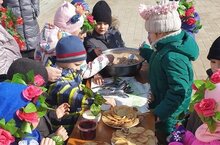 Праздник закончился чаепитием: поеданием вкусных и ароматных блинов, сладостей и бубликов, которые с любовью приготовили для них родители.