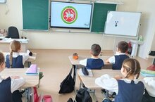 Занятие началось с прочтения стихотворения. Далее ребята работали с интерактивной картой России, гербом Татарстана, посмотрели видеоролик про регион, выполнили интерактивное задание «Мы гордимся!». Также просмотрели видеоролик про регион с выставки России «Мы единая страна».