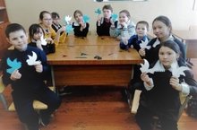 Бөек Җиңүгә 75 ел тулу уңаеннан, бүген укучылар белән тынычлык символы булган, ак күгәрченнәр турында сөйләштек. Күгәрчен - Җиңүгә таба очучы кош. Әлеге кош турында шигырьләр, табышмаклар искә төшерелде. Ахырдан укучыларыбыз белән бергәләшеп ак күгәрченнәр ясадык. Илгә, җиргә тынычлык теләп, мәктәбебезне күгәрченнәр белән бизәдек.