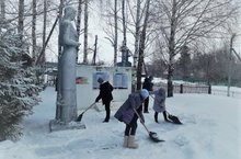 Укучылар авылдагы һәйкәлне җыештыруда катнаштылар һәм Ветераннарны искә алып чәчәкләр салдылар.