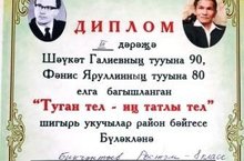 Бүген районыбызда Шәүкәт Галиевнең тууына 90, Фәнис Яруллинның тууына 80 елга багышланган "Туган тел - иң татлы тел" дип исемләнгән шигырь укучылар бәйгесе узды. Шушы бәйгедә мәктәбебезнең 8 нче сыйныф укучысы Бикчәнтәев Рөстәм уңышлы чыгыш ясап, III дәрәҗә диплом белән бүләкләнде (укытучысы Әюпова Р.Ф.).