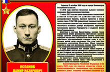 Бүген тәрбия сәгатендә Россия Геройлары белән танышуны дәвам итеп Дамир Исламов батырлыгы белән таныштык. Казан танк училищесын тәмамлаган Лениногорск егете өлкән лейтенант Дамир Исламов Украинадагы махсус хәрби операциядә катнаша. Аның танк экипажы көндәшенә җитди зыян китерә, биш танк белән тигезсез көрәшкә керә, аларның дүртесен юк итә. Алга таба һөҗүм итү барышында Дамирның хәрби машинасы сафтан чыгарыла. Хәрби бурычны үтәгәндә күрсәткән батырлыгы һәм кыюлыгы өчен Дамир Исламовка Россия Герое исеме бирелә (үлгәннән соң). Аның Ватанга хезмәт итү үрнәге безнең хәтердә мәңге калачак.