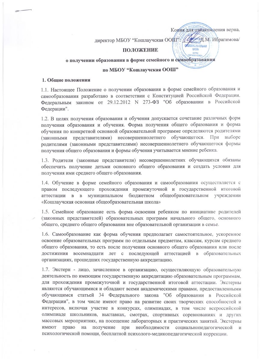 - Положение о получении образования в форме семейного и самообразования