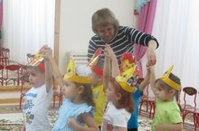 Во второй половине занятия дети просматривали и прослушивали музыкальную сказку М.Мусоргского «Балет невылупившихся птенцов», что благотворно сказалось на их последующих действиях: игре с Петушком и пении с движениями с мамой Курочкой.