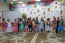 Новую сказку на новый лад подарили на празднике дети группы №9 своим мамам,только сказка была добрая : Волк не съел семерых козлят, подружился с Красной Шапочкой, с удовольствием вместе отведали маминых пирожков. А дети подарили своим мамам и бабушкам настоящий праздник: спели песни «Солнечная капель», «Подарок маме», «Мама, прости меня!», «Әбием,әбекәем”,”Чәй эчәбез бергәләп”, станцевали латиноамериканский танец, танец с лентами, с цветами, танец солдат,”Буги-Вуги”. А кактус, изготовленный детьми из гофрированной бумаги,стал неожиданным сюрпризом для мам и бабушек!