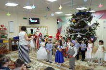 Кто является главным героем новогодних торжеств? Конечно же , Дед Мороз! Вот только он веселился с воспитанниками 14 группы и нечаянно уснул под елкой. Что же делать? И только задорные бубны детишек смогли его разбудить. Пришедшие в гости Зайчик и Лисичка вместе со Снегурочкой и детьми играли и пели, танцевали и рассказывали стишки, за что Дед Мороз со своей внучкой вручил каждому малышу сладкий подарок.