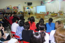 В нашем учреждении прошло заседание педагогического совета на тему «Развитие коммуникативной функции речи дошкольников: «Общение-речь-творчество» . Речь является одной из потребностей и функций человека. Именно через общение с другими людьми человек реализует себя как личность. В соответствии с ФГОС ДО решение задач , такие как развитие связной, грамматически правильной и монологической речи, развитие речевого творчества, звуковой и интонационной культуры речи, знакомство с книжной культурой, формирование звуковой активности , должны осуществляться в процессе разных видов деятельности. В практической части педсовета были проведены открытые мастер-классы в группах №№8,9,10 по использованию современных форм работы по развитию коммуникативной функции речи и открытые совместные занятия воспитателей с логопедом в группах №№11,12 по коррекции речевых нарушений через творческую деятельность, осуществлен оперативный контроль по организации развивающей речевой среды. В рамках педсовета был изучен опыт работы воспитателя Файзуллиной В.Р. и воспитателя по татарскому языку Кутдусовой А.Р..