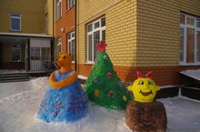 Фигуры из снега «По щучьему велению», изготовленные воспитателями, младшими воспитателями совместно с родителями групп №3 ,№5.