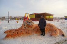 Фигура из снега «Тигр», изготовленная воспитателями, младшими воспитателями совместно с родителями группы №2.