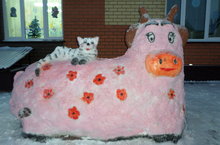 Фигура из снега «Простоквашино», изготовленная воспитателями, младшими воспитателями совместно с родителями группы №7.