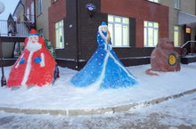 Фигуры из снега «Самовар и Матрешка», изготовленные воспитателями, младшими воспитателями совместно с родителями групп №13,№14.