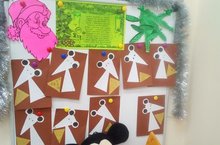 Кечкенәләр төркеме балалары тычкан елын каршы алырга әзерләнәләр. Ябыштырып ясаган рәсемнәрендә алар тычканны сыр белән кунак итәләр.