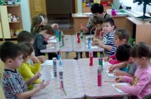 Дети с удовольствием учились и выполняли приемы росписи, а также проявляли свою фантазию и умение работать красками в процессе народного творчества.