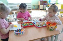 Игра в мозаику тренирует мелкую моторику рук, развивает воображение и образное мышление. Мозайка приеучает работать по определенным правилам, образцу стремиться довести замысел до видимого результата.