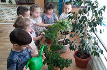 Влияние окружающего мира на развитие ребёнка огромно. Знакомство с бесконечными, постоянно изменяющимися явлениями, начинается с первых лет жизни малыша. Явления и объекты природы привлекают детей красотой, яркостью красок, разнообразием. Наблюдая за ними, ребёнок обогащает свой чувственный опыт, на котором и основывается его дальнейшее творчество. Чем глубже ребёнок познаёт таинства окружающего мира, тем больше у него возникает вопросов. Основная задача взрослого состоит в том, чтобы помочь ребёнку самостоятельно найти ответы на эти вопросы. Особенно велика роль природы в воспитании детей. Ознакомление детей с природой в детском саду требует постоянного непосредственного общения с ней. Ребёнок проводит в детском саду большую часть дня. Создать живую, домашнюю атмосферу в помещении помогут комнатные цветы и растения. Они не только красиво выглядят, но и выполняют полезные функции – очищают воздух от токсинов и пыли. Ещё растения повышают уровень влажности в помещениях, что важно в отопительный период.Дети любят ухаживать, поливать растения в группе детского сада, протирать крупные растения влажной тряпочкой, рыхлить почву и опрыскивать листья. Такие элементарные трудовые поручения воспитывают интерес к комнатным растениям и желание ухаживать за ними.Так, воспитатели начинают обучение детей простейшим навыкам ухода за комнатными растениями: поливать, рыхлить и опрыскивать, проводя ряд занятий познавательного характера и в целях воспитательной работы, направленной на привитие любви, заботы и гуманного отношения к природе.