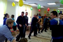 В нашем детском саду продолжаются развлекательные игры, приуроченные ко Дню защитников Отечества. Папы приготовились к празднику заранее: одели спортивную одежду, приготовили плакаты со своими фотографиями и отпросились с работы (ведь это тоже очень важно).
