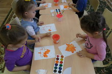 Лепка является одним из любимейших занятий малышей 1 младшей группы.Сегодня они лепили пирожки и угощали ими сказочных персонажей. Занятия лепкой одновременно являются и занятиями по развитию речи. В процессе обыгрывания сюжета и выполнения практических действий с пластилином ведется непрерывный разговор с детьми.Такая игровая организация деятельности детей стимулирует их речевую активность,вызывает речевое подражание,а в дальнейшем организует диалог с игрушечными персонажами. Во время лепки развивается мелкая моторика пальцев,воображение,формируются навыки ручного труда,дети учатся координировать движения рук,приобретают сенсорный опыт - чувство пластики,формы и веса.