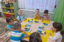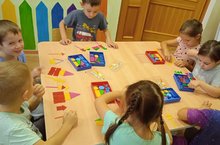 Беренче номерлы зурлар төркемендә геометрик фигуралар ярдәмендә конструкторлаштыру шөгыле узды. Балалар тигез геометрик фигуралар ярдәмендә төрле корылмалар төзеделәр.Мондый эш төрләре балаларның фикерләү сәләтләрен үстерүгә, кул моторикасын активлаштыруга зур ярдәм итә.