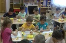 Өлкәннәр төркемендә тәрбияләнүчеләр "Көз безгә нәрсәләр алып килде?" дигән темада рәсем ясадылар.Балаларның көзге уңыш турында күзаллаулары үстерелде,җиләк- җимеш,яшелчәләрне рәсемгә төшерергә өйрәнделәр. Эстетик зәвык формалаштырылды.