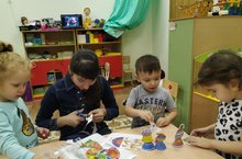 В соответствии с Федеральным Государственным Образовательным Стандартом Дошкольного Образования одной из основных задач стоящих перед дошкольной организацией является: «Обеспечение психолого-педагогической поддержки семьи и повышение компетентности родителей (законных представителей) в вопросах развития и образования, охраны и укрепления здоровья детей»В связи с этим меняется позиция детского сада в работе с семьей, возникает необходимость активного включения родителей в жизнь ДОУ.Встаёт вопрос: Как заинтересовать родителей в совместной работе?Одним из путей решения данного вопроса является: поиск новых форм взаимодействия с семьями воспитанников.В основе взаимодействия детского сада и семьи лежит сотрудничество педагогов и родителей, которое предполагает равенство позиций и уважительное отношение друг к другу.Полноценное воспитание и развитие дошкольников происходит только при условии тесного сотрудничества и взаимодействия семьи и дошкольной организации.Поэтому мы педагоги все чаще использует новые формы в работе с семьями воспитанников.Одной из эффективных форм взаимодействия с родителями является проведение мастер – классов. Эта форма работы позволяет реализовать потребность в установлении взаимопонимания между педагогами и родителями в пространстве ДОУ, позволяет обмениваться эмоциями, знаниями, опытом.Любой ребенок может стать творческой личностью. Чтобы воспитать талантливого человека, необходимо развивать у детей в дошкольном детстве творческое мышление, умение способность нестандартно мыслить.Эффективным методом развития творческих способностей детей является знакомство не только их, но и родителей с нетрадиционными техниками рисования, различными материалами, интересными приёмами, используемыми в художественном творчестве. Сегодня родители воспитанников второй младшей группы №1 организовали и проводили мастер-классы на тему : "Новогодние игрушки". На мастер-классах помимо родителей, присутствуют и дети.