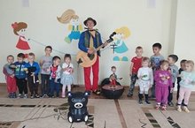 Сегодня наши воспитанники встретились с человеком-оркестром из Петербурга, который познакомил наших ребят с множеством музыкальных инструментов. И приехал он со своим двойником - куклой. Каждый ребенок мог потрогать и поиграть на музыкальных инструментах. Ребята были в восторге.