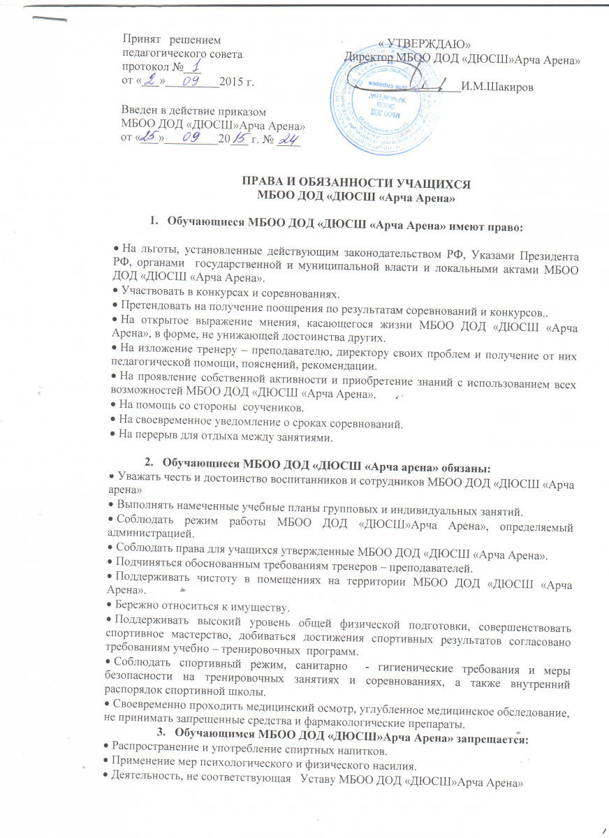 Правила внутреннего трудового распорядка о правилах приема, отчисления спортсмена
