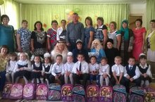 "Мәктәпкә җыенырга булыш" акциясе кысаларында беренче сыйныф укучыларына сумкалар тапшыру Апаз урта мәктәбендә булып үтте.