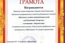 Поздравляем Мазитову Э.Р. и Нуриеву Л.Р., победителей муниципального этапа Республиканского конкурса " Пятьдесят инновационных идей для Республики Татарстан" в номинации "Перспектива" .
