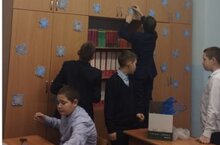 Праздничное украшение класса к Новому году - это не только традиция, но и совместное творчество. Атмосферу праздника создали ученики 6 класса в своем учебном кабинете.