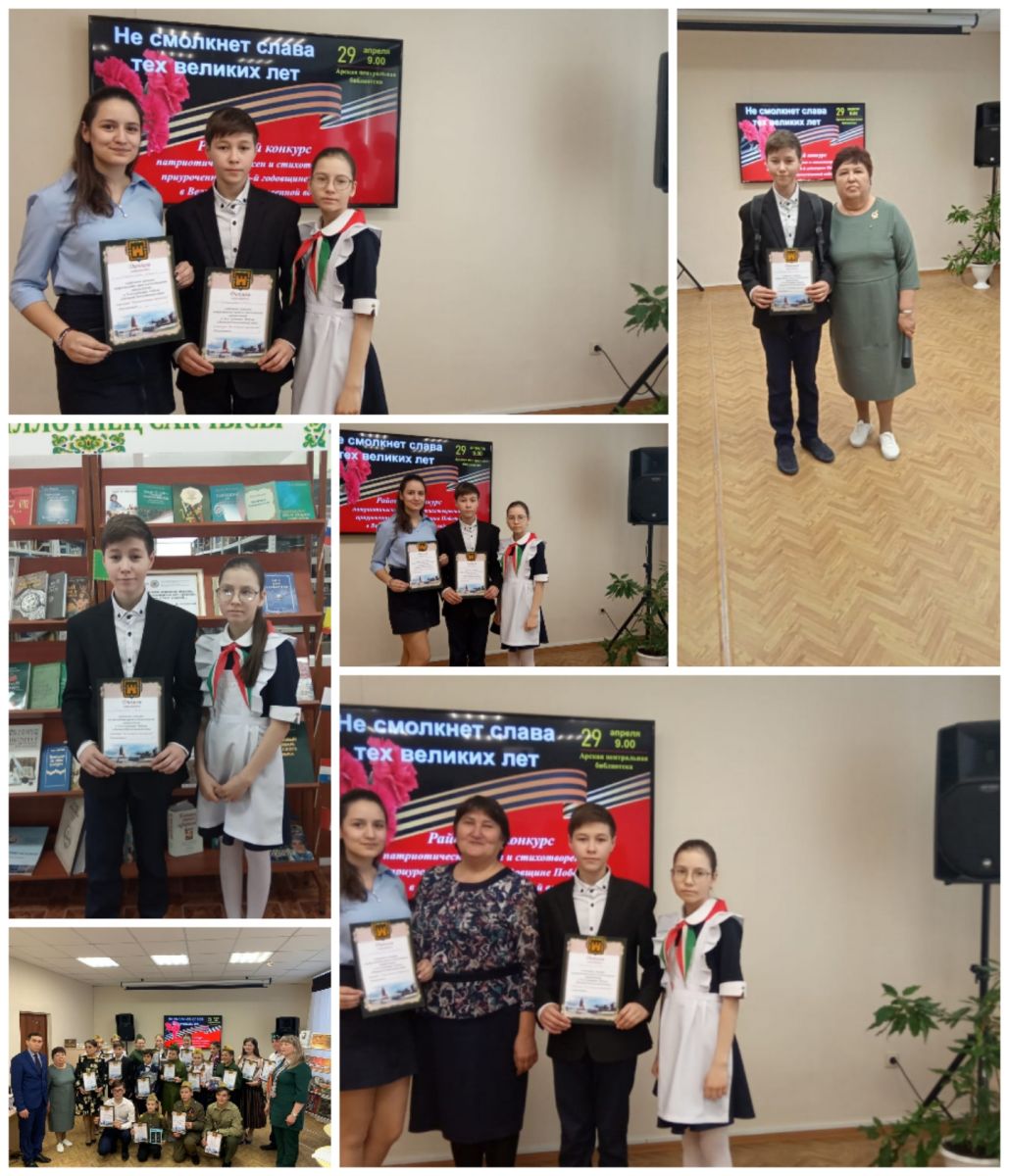 Туган телләр хәм халыклар бердәмлеге елы уңаеннан районыбызда Җиңүнең 76 еллыгына багышлап патриотик җырлар һәм шигырьләр бәйгесе үтте. Мәктәбебездән 4 сыйныф укучысы Әсхәдуллина Гузәл, 7 нче сыйныф укучысы Әсхәдуллин Раил, 9 нчы сыйныф укучысы Галаветдинова Гөлфия яхшы уңышлар яулап кайттылар. -