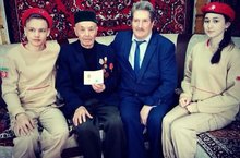 Юнармейцы нашей школы участвовали во вручении медаля ветерану тыла Ибрагимову Альтафу, в честь 75-летия ВОВ