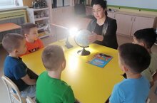 Наша планета Земля никогда не стоит на месте.Он все время медленно вращается как большой волчок.Звезда по имени Солнце - наш главный "фонарик".Оно светит всегда.Земля делает один полный оборот.Та сторона планеты,которая повернута к Солнцу под солнечными лучами-там день.А противоположная сторона смотрит на тёмный космос-там ночь.Так изучают науку о космосе дети подготовительной группы"Радуга"