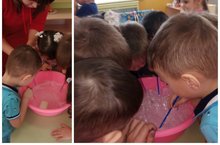 Сегодня в средней группе №1 дети ставили опыты с мыльными пузырями. Эта забава известна с давних времён и привлекает внимание детей и взрослых. Мыльные пузыри обычно существуют лишь несколько секунд и лопаются при прикосновении или самопроизвольно. Всем известно, что мыльные пузыри вызывают положительные эмоции не только у детей, но и у взрослых. Это незабываемое и захватывающее зрелище способно привнести оживление в любой праздник. Особенно интересно самому принимать непосредственное участие при создании сказки.