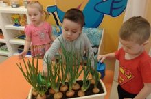 Лук - неприхотливое быстрорастущее растение, которое легко вырастить в комнате у окна. Дети 2 младшей группы №2 с удовольствием ухаживают за ним, рассматривают рост лука, учатся подмечать его пользу.